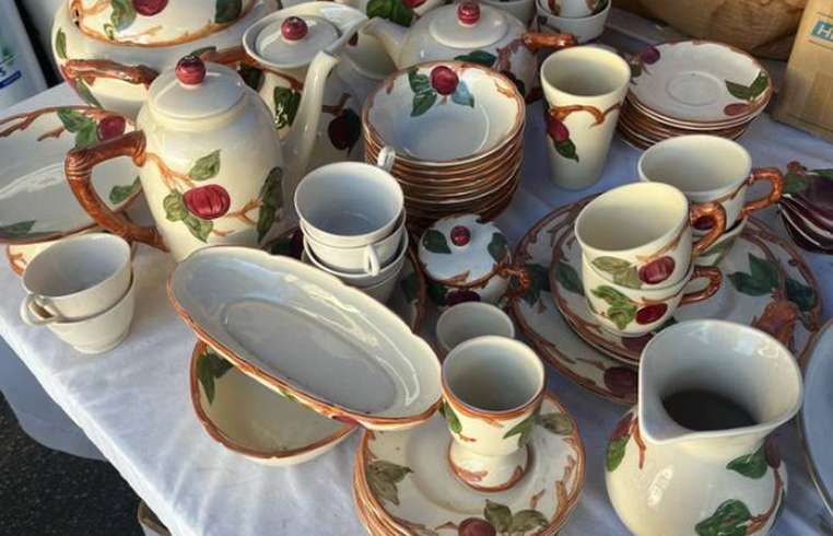 In addition to the Del Monte set, I have approximately 60 pieces of Franciscan Apple china. These include various pieces, each with its own price, as detailed in the accompanying photos. Feel free to reach out with any questions. Thank you for your interest!